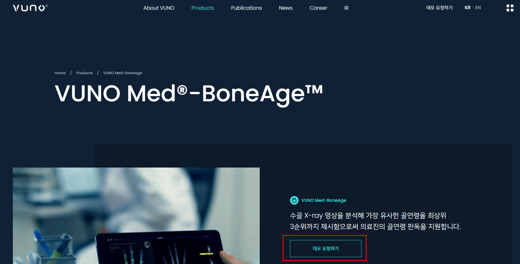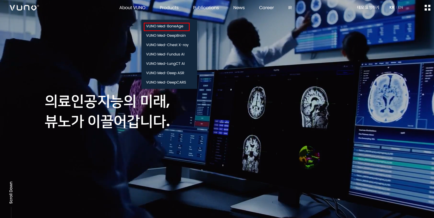 뷰노의 홈페이지 중 Products에서 아무것이나 선택하여 클릭합니다.