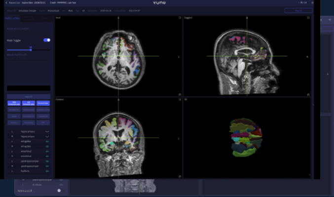 뇌 MRI 영상을 통해 위축 정도를 정량화 할 수 있으며 이를 통해 다양한 퇴행성 뇌질환 진단을 보조하는 소프트웨어.