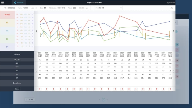 환자의 활력징후를 기반하여 24시간 이내 심정지가 발생할 위험도를 제공하는 소프트웨어. 혈압, 맥박, 호흡, 체온의 4가지 활력 징후를 바탕으로 심정지 발생 위험도를 0~100점의 점수로 제공합니다.