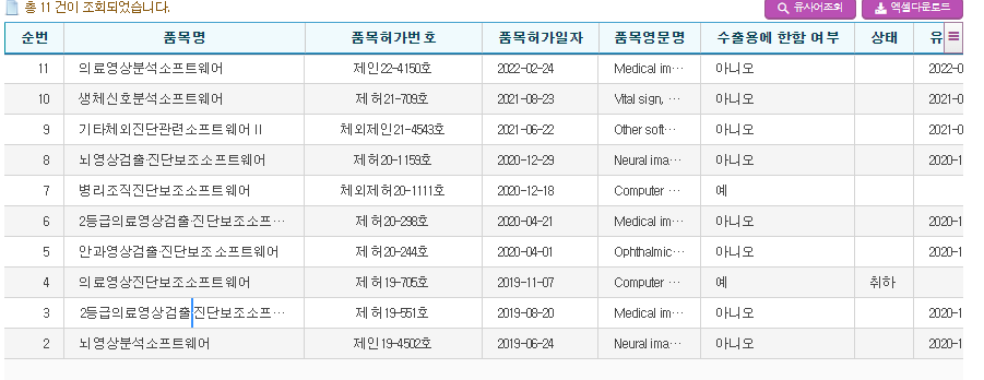 뷰노는 코스닥에 상장중인 AI 의료기기 기업입니다. 18년 4월 4일 'X-ray 영상을 통한 골연령을 판독하는 소프트웨어(2등급 의료기기)' 등록을 시작으로 2022년 2월 24일 '흉부 CT영상을 자동으로 분석해 영상 내 특징적인 음영 패턴 영역을 분석, 시각화하는 소프트웨어(2등급 의료기기)'까지 총 11개에 달하는 의료기기를 등록했으며, 지금까지 그 활동을 이어나가고 있습니다.