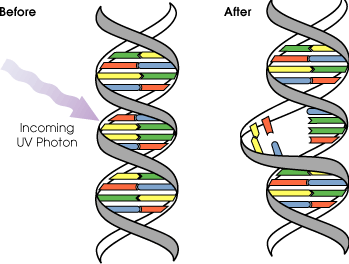 자외선은 DNA 속의 핵산에서 광화확 반응을 일으켜 전자파 에너지를 생성합니다. 이 에너지는 DNA의 염기서열을 구성하고 있는 특정 티민 혹은 시토신 이합체의 형성을 유발해 돌연변이및 세포사멸/재생 실패를 야기하여 박테리아/세균의 불활성화를 일으킵니다.