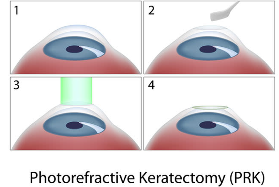 - 의사는 레이저나 블레이드를 통해 각막의 가장 바깥 부분인 각막 상피 일부를 잘라냅니다.