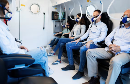 - 환자는 의료 서비스 제공자와 함께 고압산소챔버로 이동합니다.